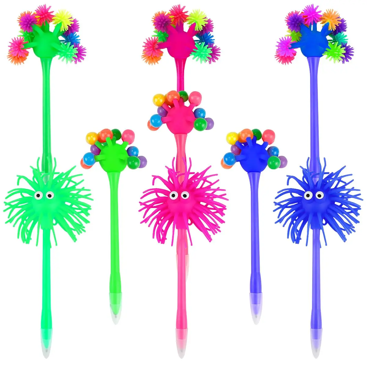 3Pcs Ballpoint Pens Cute Sea Urchin Shaped Pens Soft Rubber Monster Pens Office Stationery Creative Blue Ink Gel Pens Office