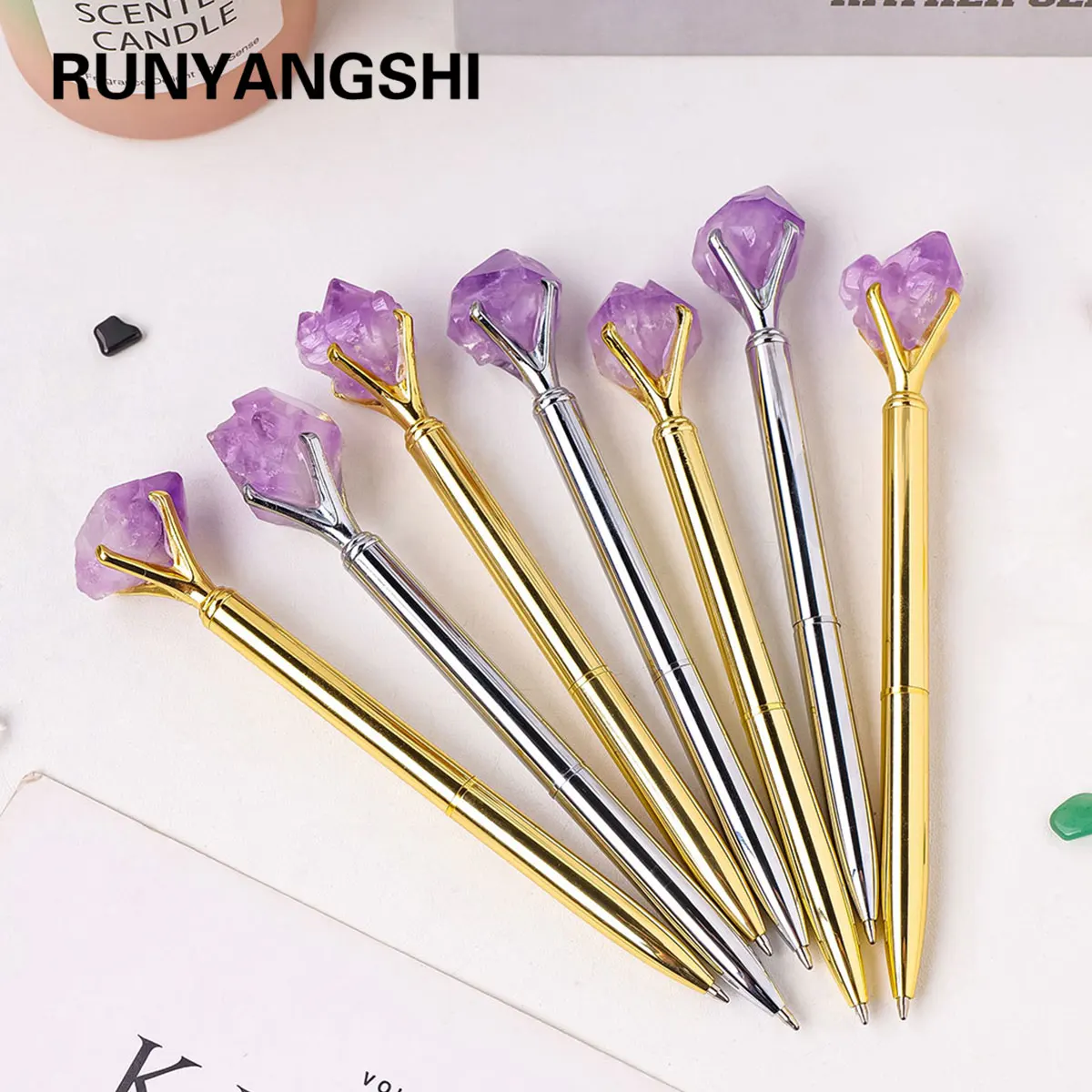 1PC Natural Healing Amethyst Crystal Original Raw Stone Cylindrical Pen Ballpoint Pen Student Stationery Office Business Gifts