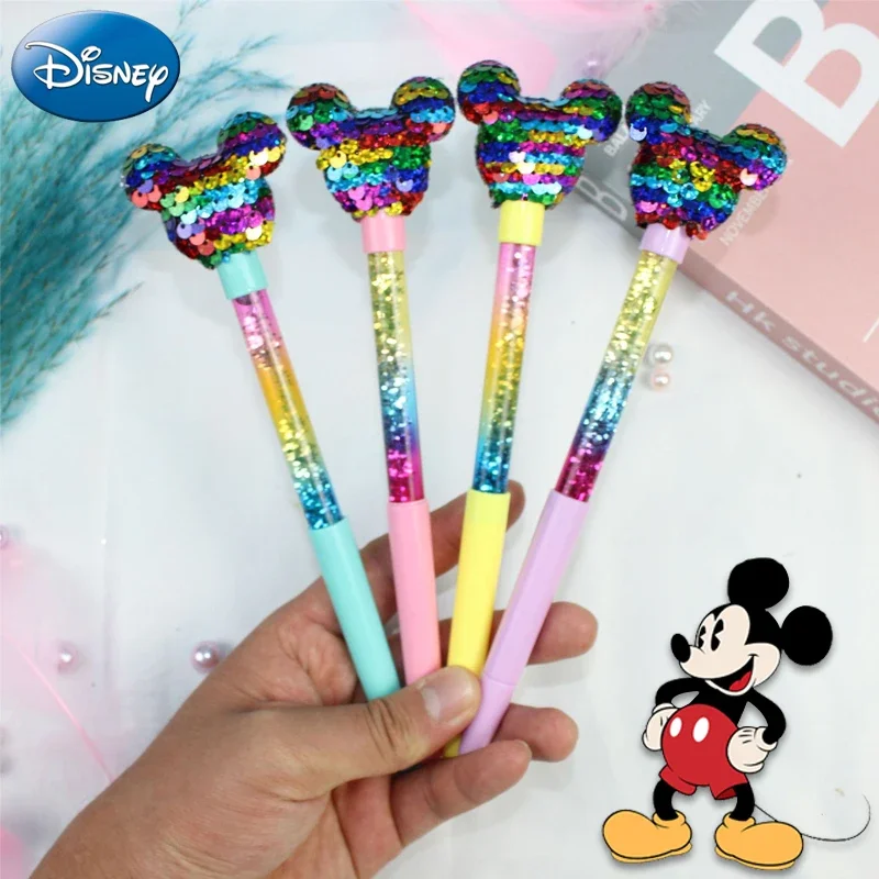 1/6Pcs Disney Mickey Mouse Quicksand Sequined Gel Pen Cartoon 0.5mm Creative Black Ballpoint For Writing Office School Supplies