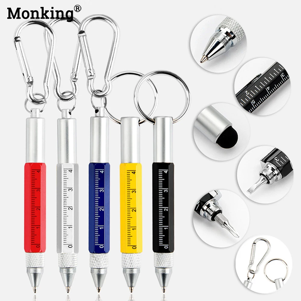 Monking 6 in 1 Multifunctional Pen With Keychain Touch Screen Stylus Capacitive Pen with Screwdriver Ruler Ballpoint Pencil Tool