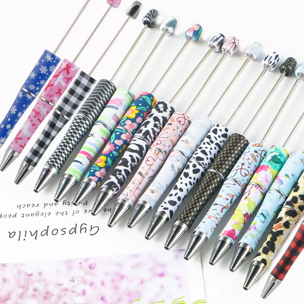 5pcs Newest Printed Leopard Christmas Ballpoint Pen DIY Beadable Pen Student Pens School Stationery Supplies