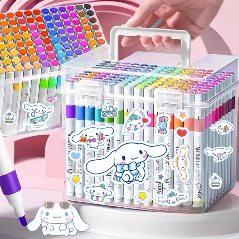 Sanrio Cinnamoroll Cartoon Acrylic Marker Paintbrush For Kindergarten Students Paper-Tight Stackable Children'S Color Pen Set