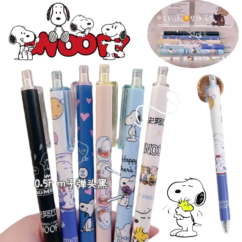 6pcs Snoopy Neutral Pen 0.5mm Black Water Pen for Writing Notebooks Girls CuteSchool Office Supplies Accessories Stationery Gift