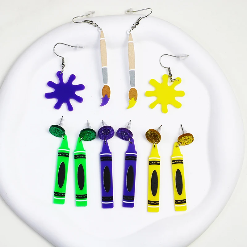 New Creative Teaching Whiteboard Pen Paint Brush Acrylic Drop Earring For Women Funny Colorful Dangle Earring Teacher's Day Gift  Read more