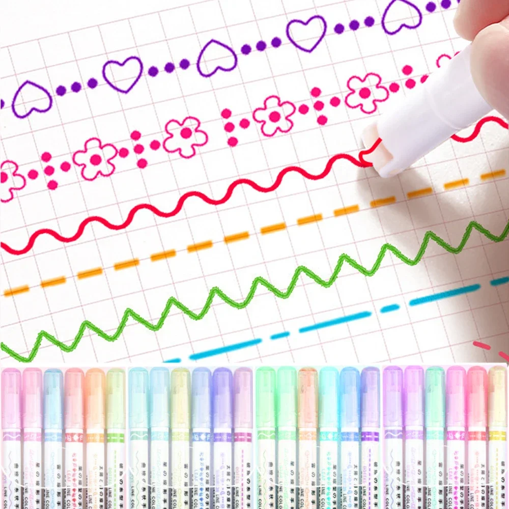 6Pcs/Set Kawaii Flower Line Shape Highlighter Pen Roller Tip Curve Liner Marker Stationery Back To School Office Supplies Gifts