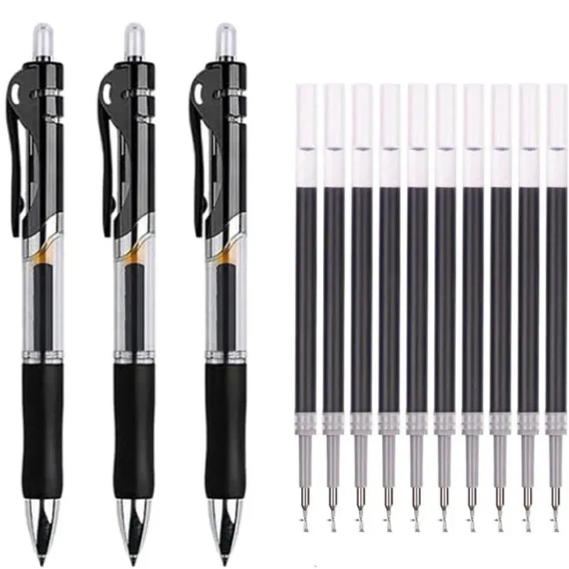 Retractable Gel Pen Set 0.5mm Black/Red/Blue Large Capacity Ball Point Pen Handle Replaceable Refills Rod School Office Supplies