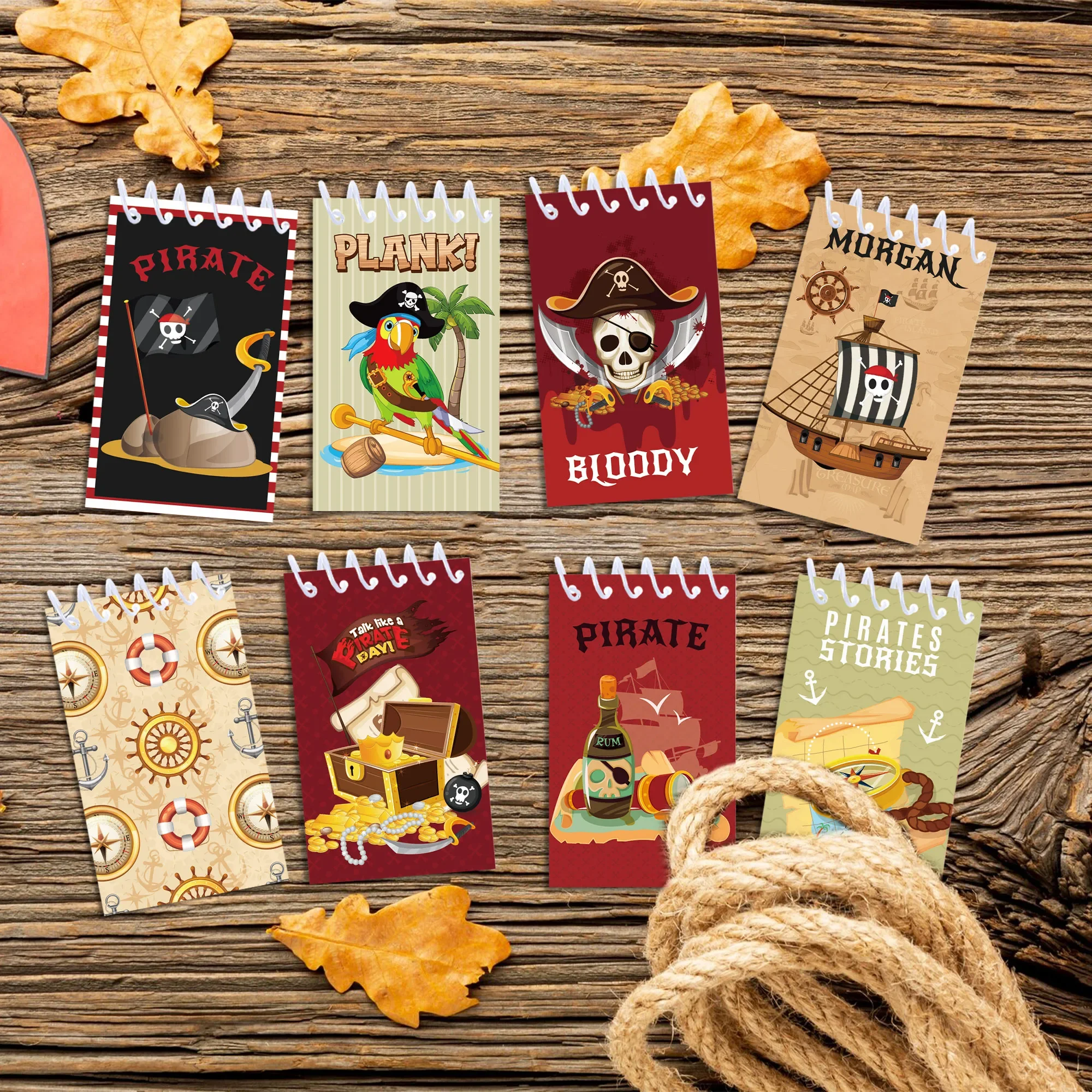 8pcsHalloween Pirate Theme Mini Spiral Pocket Notebook Memo Pad Reel Booklet Notepad School Diary Children's Birthday Party Gift