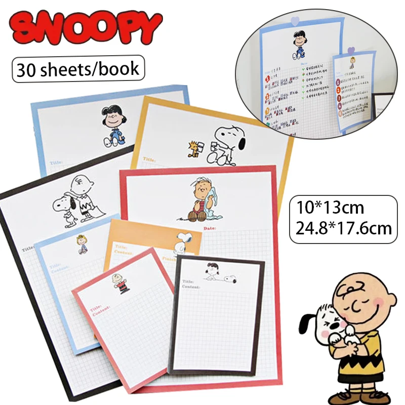 30 Sheets Snoopy Charlie Brown Memo Pad Planner Notepad Student Study Stationery Bookmark Pocket Notebook School Office Supplies