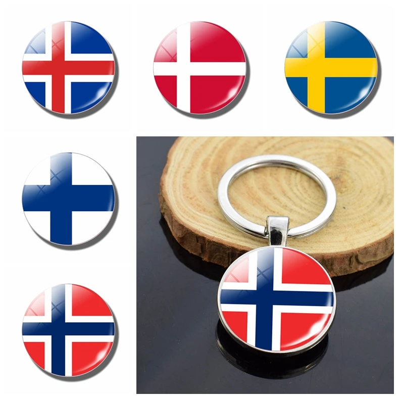 Nordic Countries National Flag Key Chains Denmark Sweden Norway Finland Iceland Flag Double Side Glass Cabochon Keyring Pendant