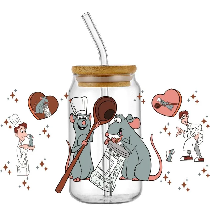 Miniso Mouse Chef Design UV DTF Sticker for 16oz Cup Wrap Decal Transfer Sticker Label DIY Logo Self adhesive