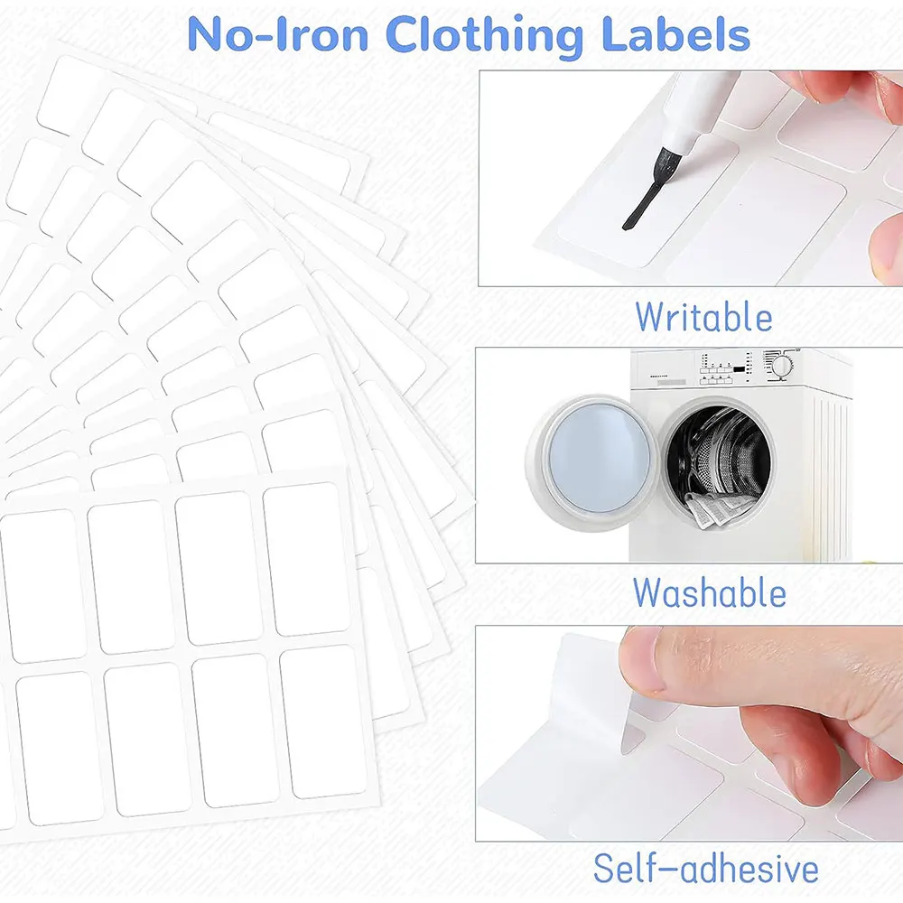 No-Iron Labels Wash Writable Self Adhesive Clothing Name Label And Permanent Fabric Markers Pen For Daycare School Home Decor