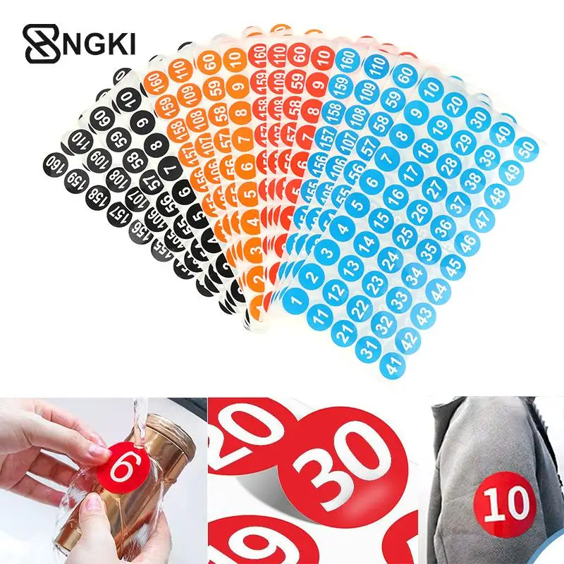 4Sheets Digital Stickers 1-200 Consecutive Number Self-Adhesive Labels DIY Nail Polish Bottle Tableware Scrapbooking Decor