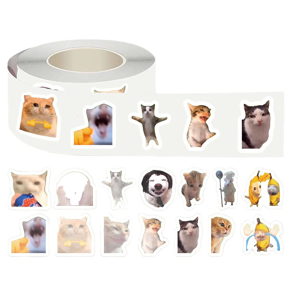 500pcs Cute Cartoon Dog Cat Meme Graffiti Sealing Stickers Roll Laptop Phone Case Decal Decoration Label Reward Sticker Gift Toy