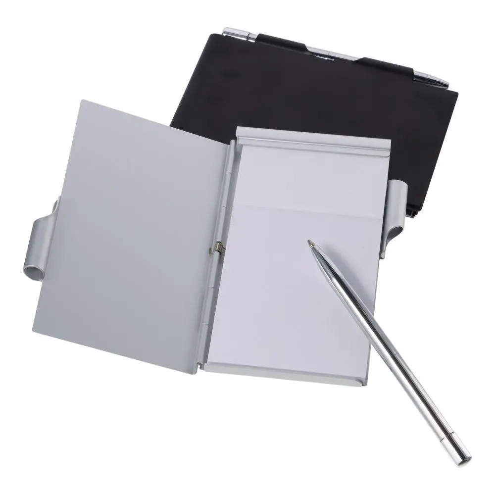 Metal Pocket Notebook Aluminum Portable Notepad with Pen and Refillable Paper Travel Notepad with Pen Holder