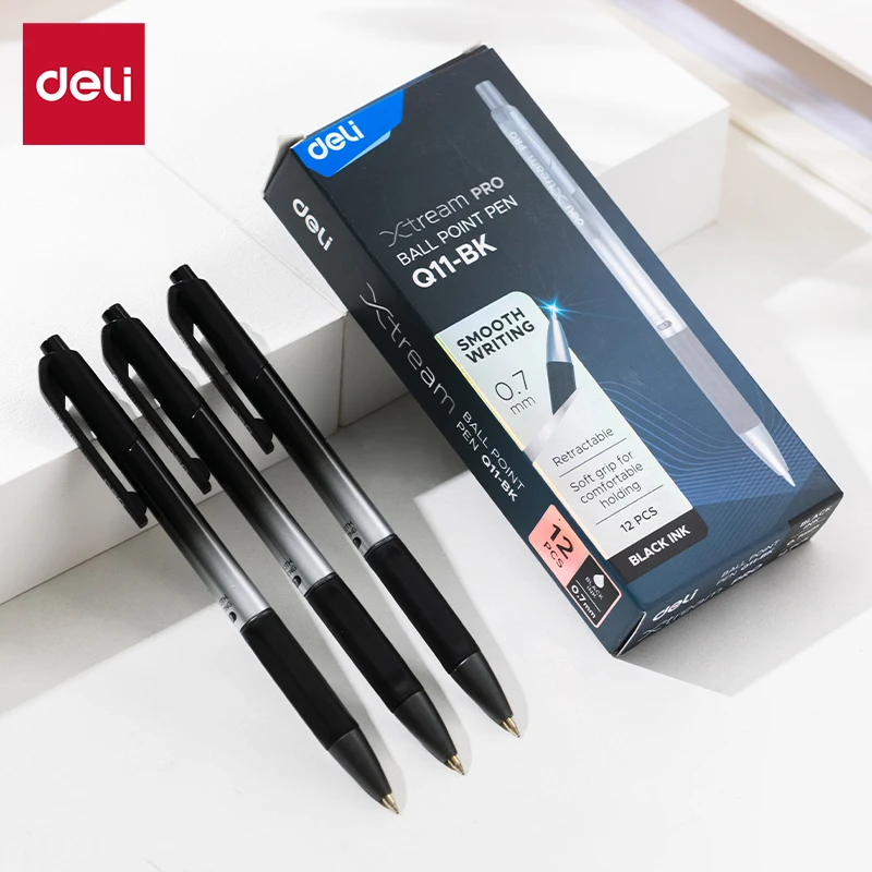 Deli 12pcs High Quality 0.7mm Ballpoint Pen Black Blue Ink Portable Signature Pen Writing Tool For School Office Supplies