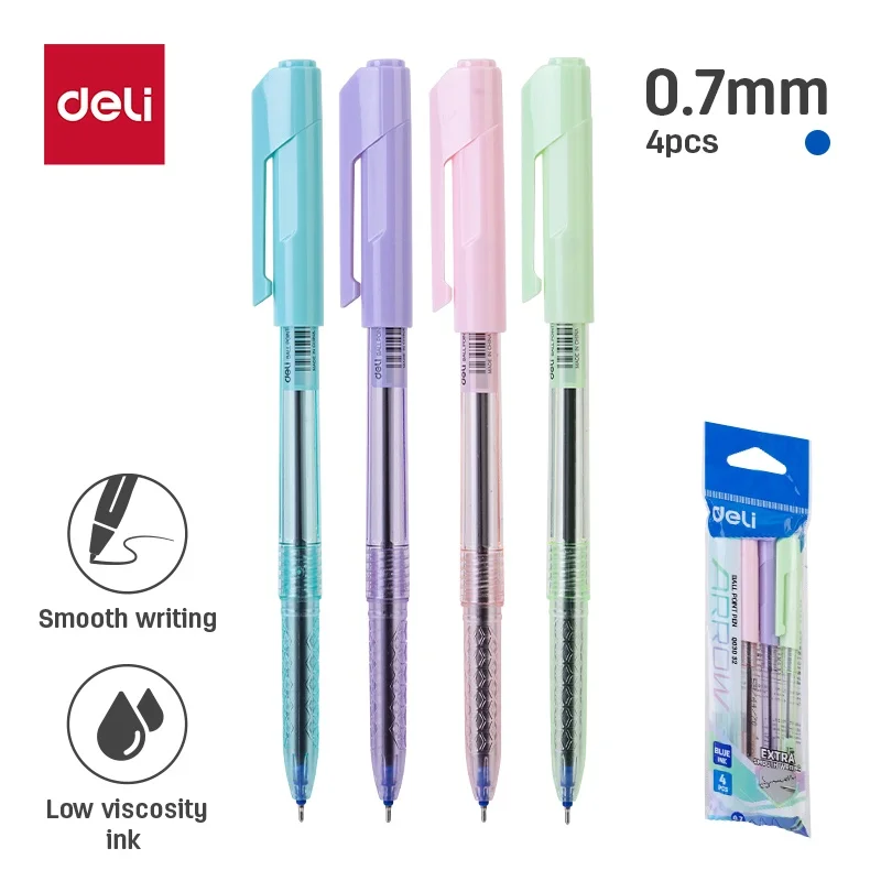 DELI Cute Ballpoint Pen Macaroon Color Blue Ink 0.7 mm Smooth Writing Tools School Ball Point Pen