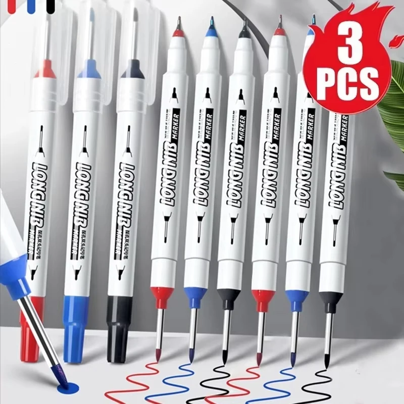 20mm Double Tip Black/Red/Blue Ink Deep Hole Long Head Nib Markers Pen Waterproof Bathroom Woodworking Decoration Multi-Purpose
