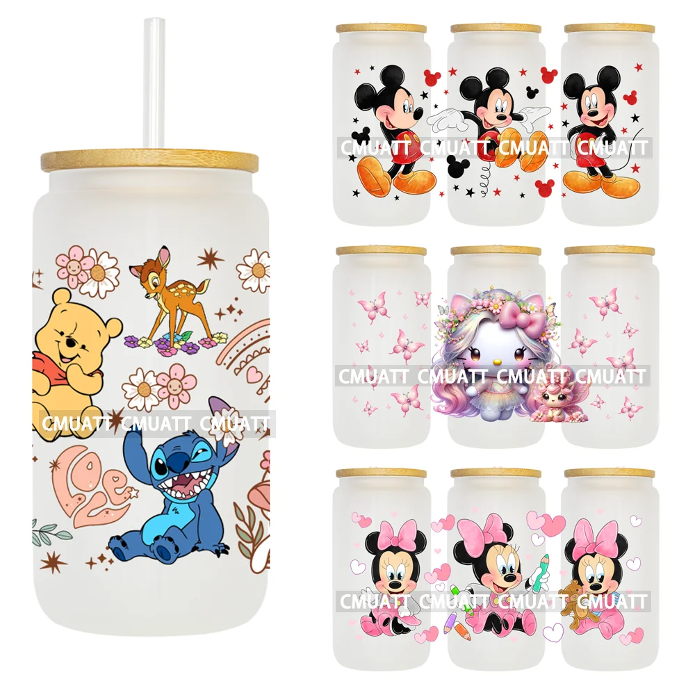 Pink Cartoon Cat With Butterflies 16OZ UV DTF Cup Wrap Transfer Sticker Custom Label DIY Waterproof Logo For Libbey Glass Can