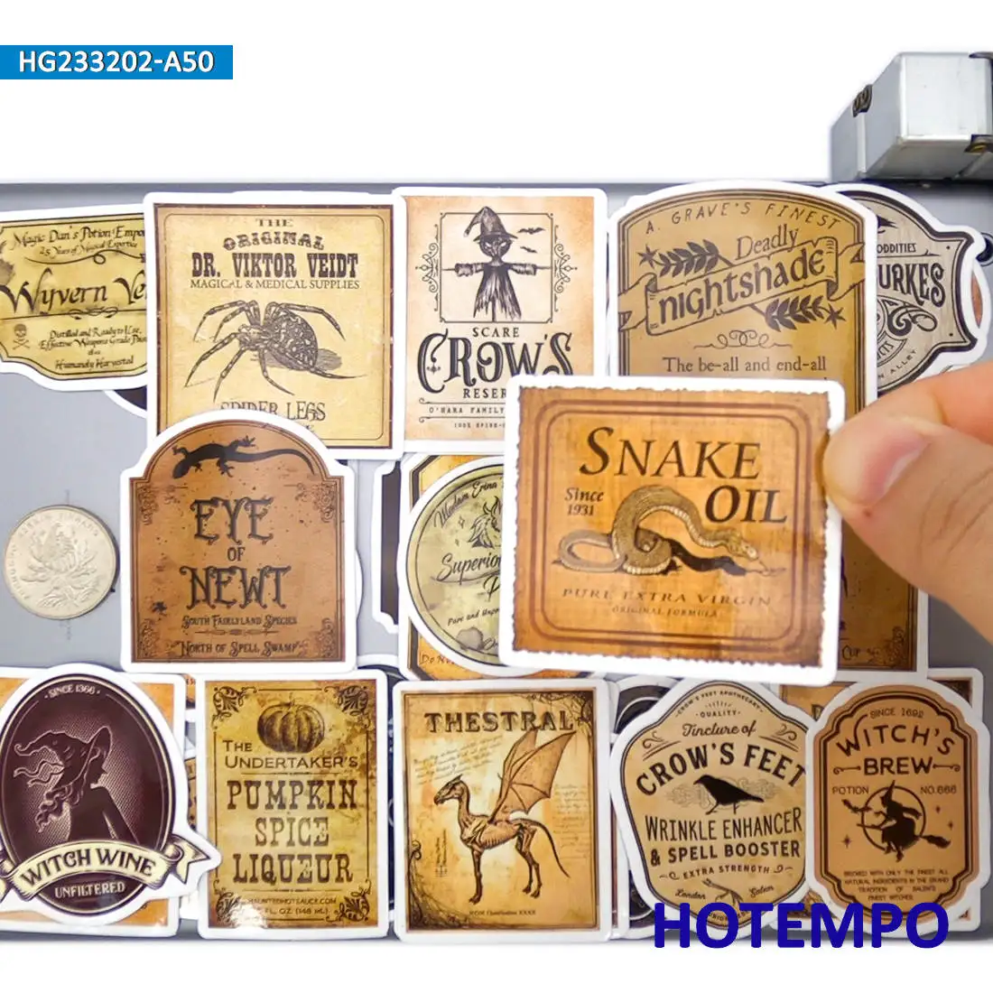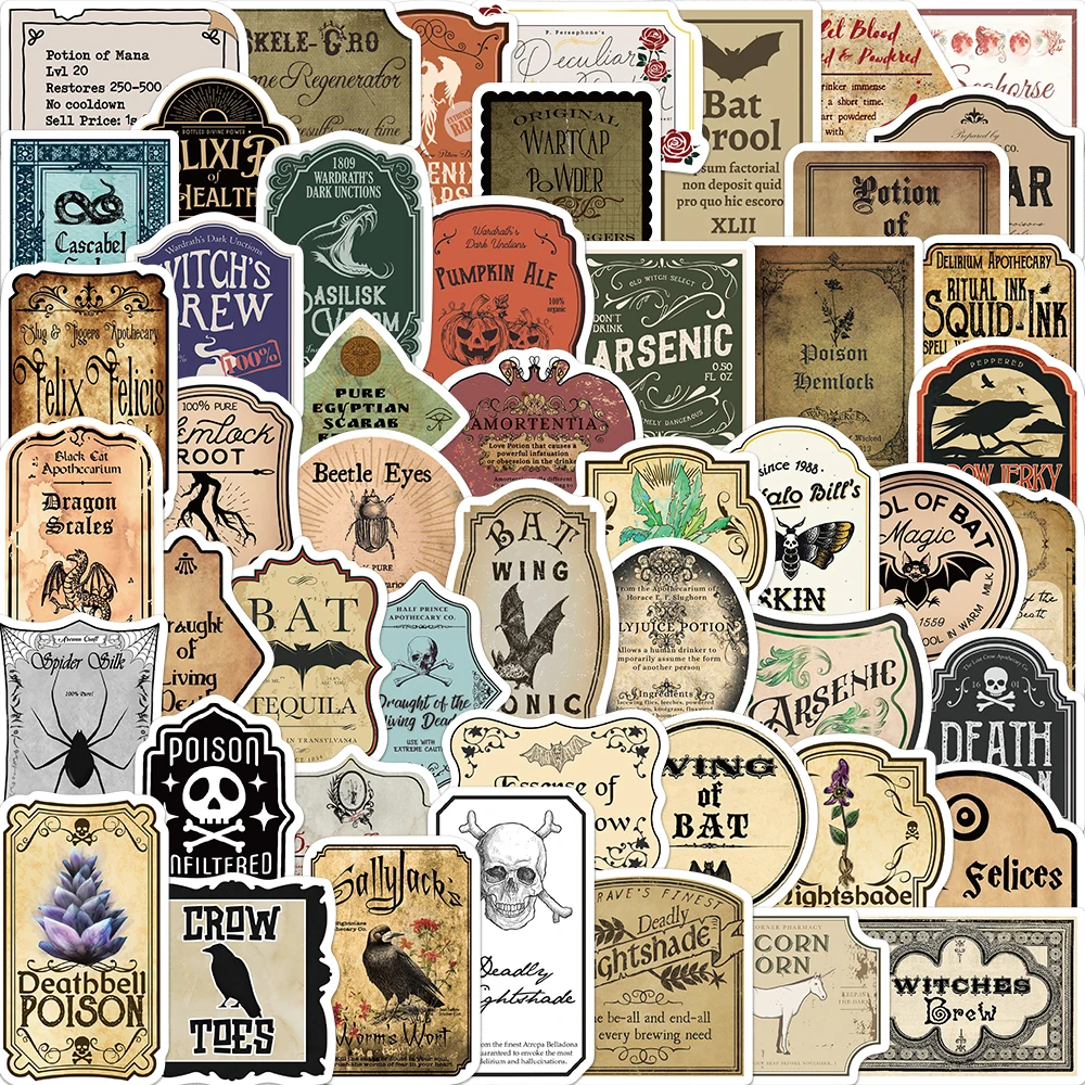 20/30/50Pieces Retro Alchemy Funny Halloween Magic Potion Label Stickers for Bottle Scrapbook Luggage Phone Laptop Sticker Toys