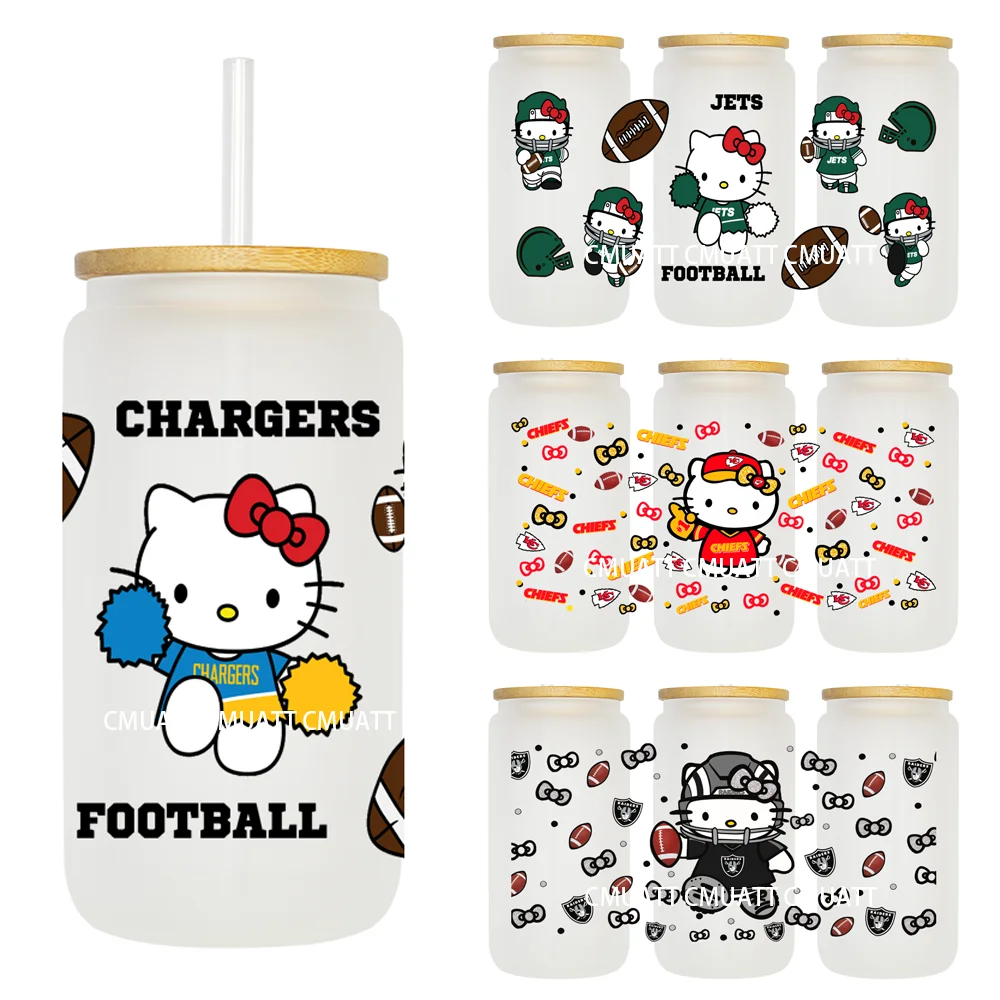 Sport Football Cartoon Cat 16OZ UV DTF Cup Wrap Transfer Sticker Custom Label DIY Durable Waterproof Logo For Libbey Glass Can