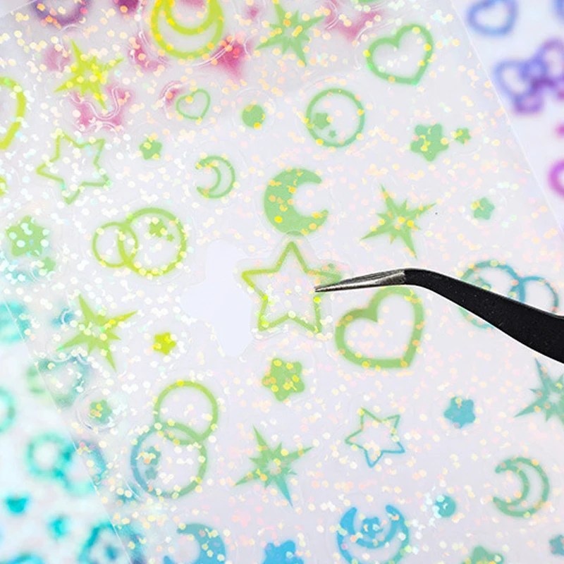 6 sheets Laser Glitter flat sticker DIY Cute label sticker Waterproof Decorative sticker for Diary Album Scrapbooking Material