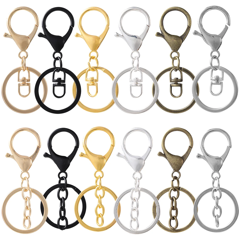5pcs/lot 30mm Key Ring Long 70mm Popular classic 11 Colors Plated lobster clasp key hook chain jewelry making for keychain