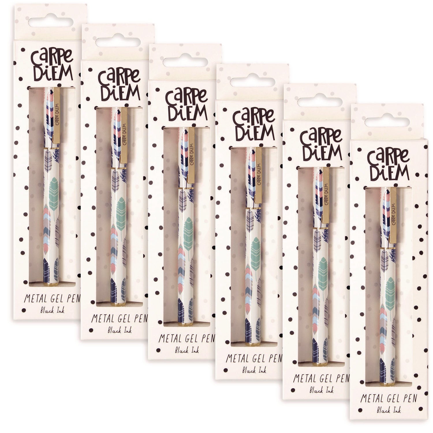 PUKKA PAD Carpe Diem All Metal Gel Pens Gel Pen, Stick, Medium 0.7 mm, Black Ink, White/Blue/Green Feather Barrel, 6/Pack (PUK9213CD)