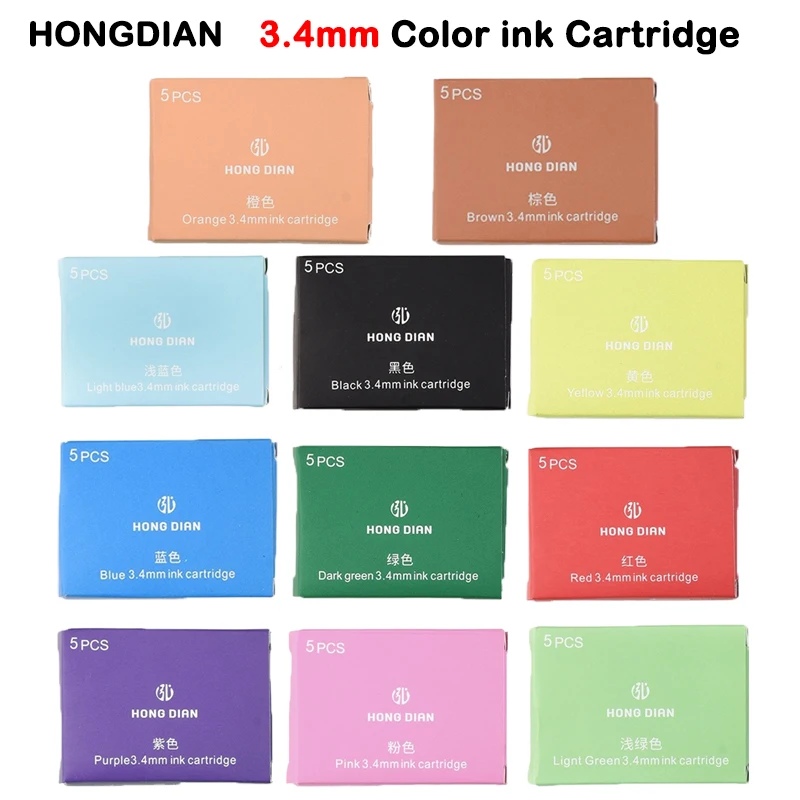 HONGDIAN 5/10/15 PCS 3.4mm Color Ink Cartridge Refill Fountain Pen Office School Stationery Ink Supplies Fountain Pen Ink