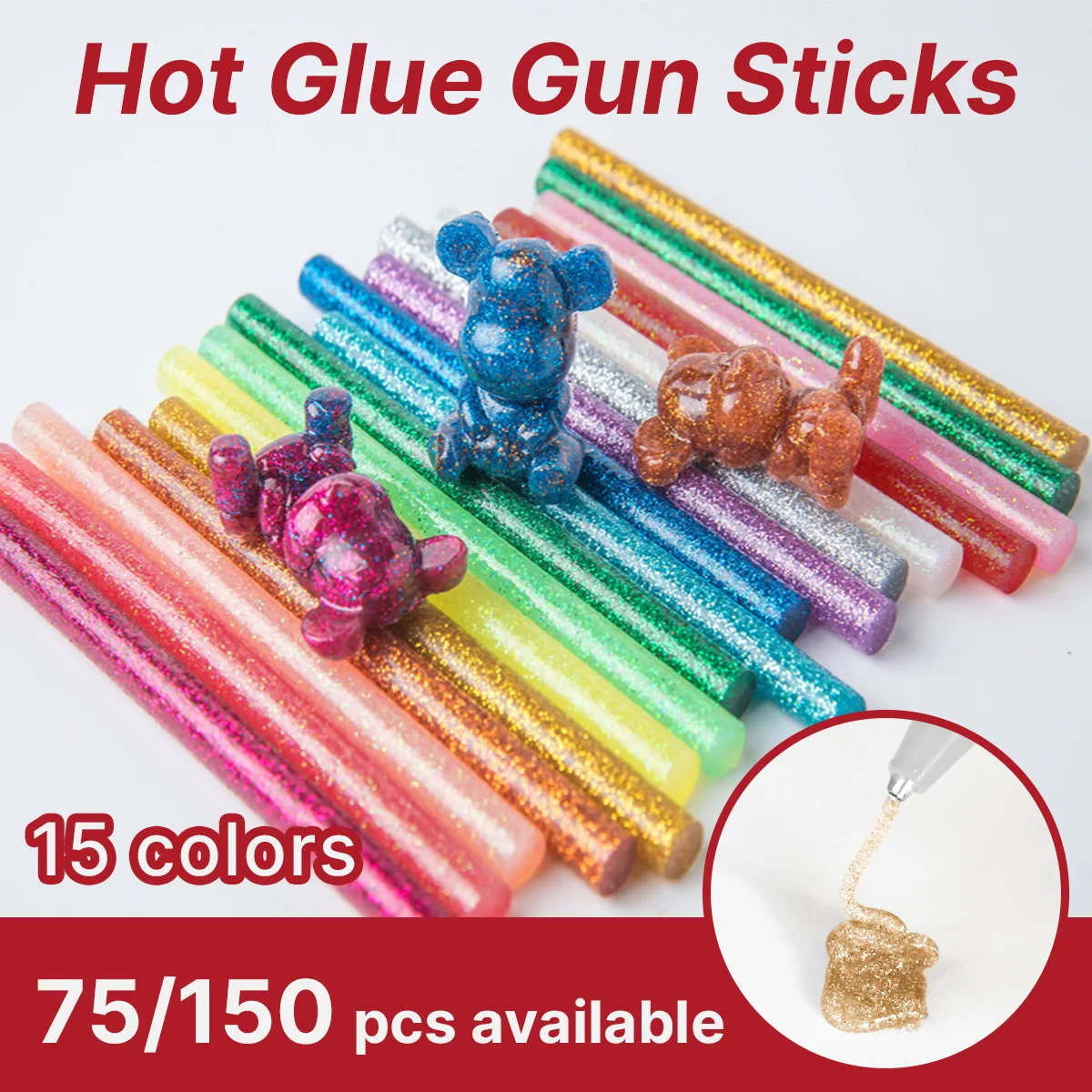 Multi-color hot melt glue stick with fine flash, 7mm*100mm, suitable for DIY, festival handmade, power tool accessories