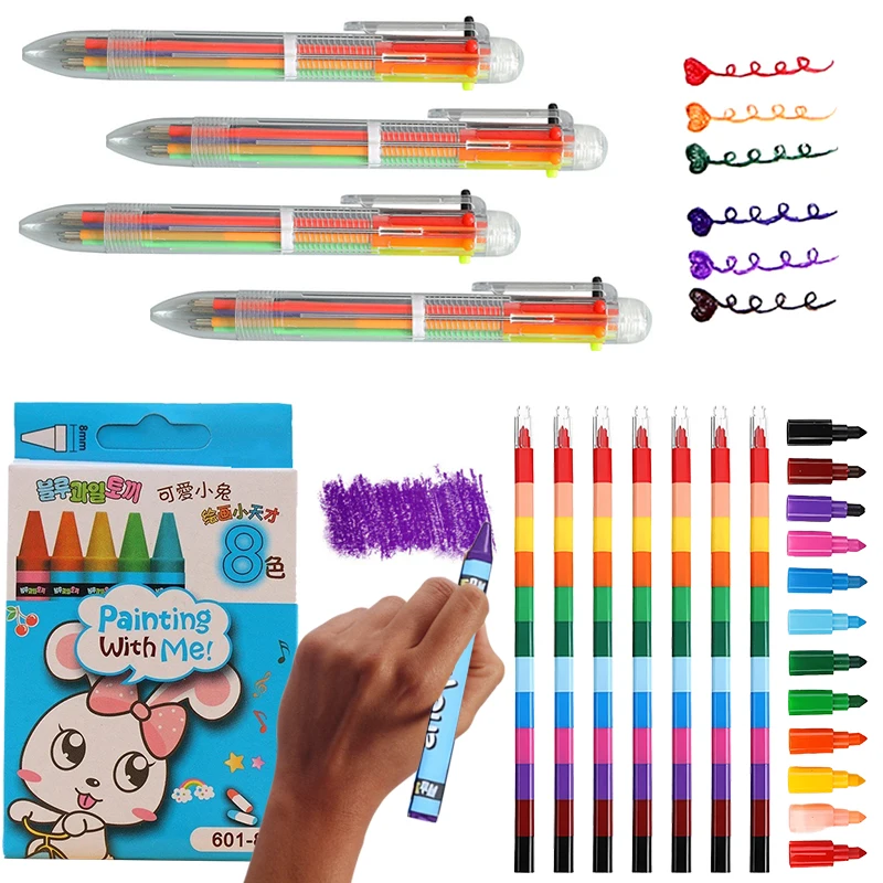 Drawing Supplies 6 In1 Ballpoint Pen 8-Color Boxed Crayon 12-Color Building Blocks Crayon Multifunction Graffiti Accessories ZYF
