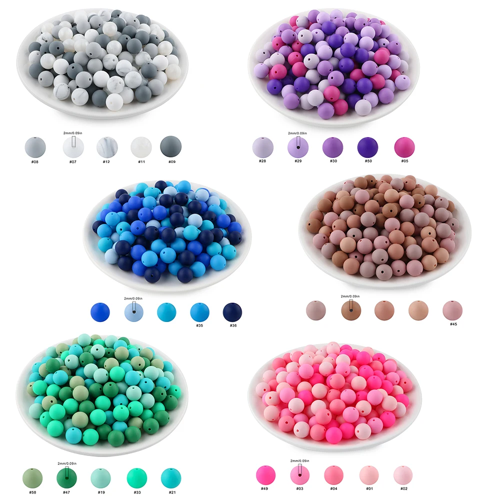 Sunrony 30Pcs 9/12/15mm Colourful Round Silicone Beads New Combination DIY For Ballpoint Pen Keychain Jewelry Necklace Bracelet