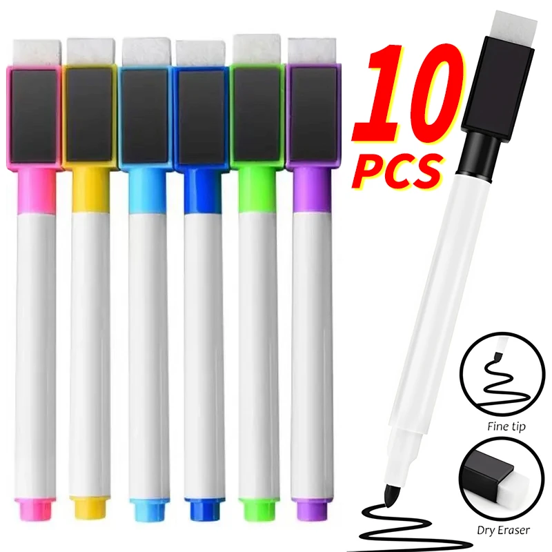 8Pcs/Set Magnetic Whiteboard Marker Pen Dry Erase Markers With Eraser For Office School Stationery Writing Drawing Pen Dry Erase