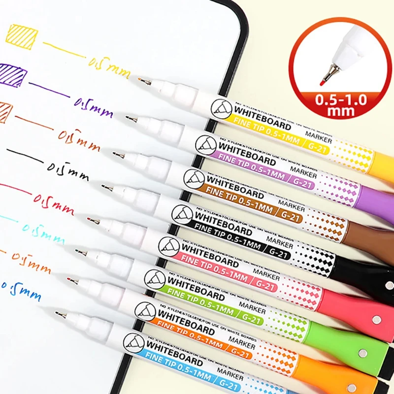 8 Colors 0.5mm Magnetic Dry Erase Markers Whiteboard Marker Pen For Office School Home Office Extra Fine Tip Colored Pens