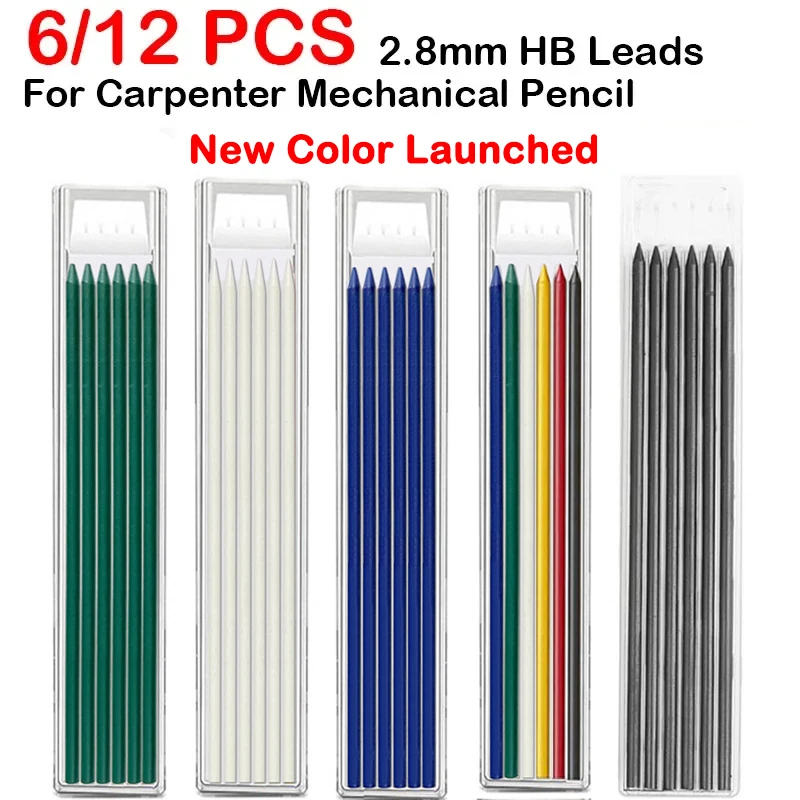 6/12 PCS Mechanical Pencil Refill 2.8mm HB Erasable Colorful Leads Woodworking Construction Art Painting Drawing Tool Stationery