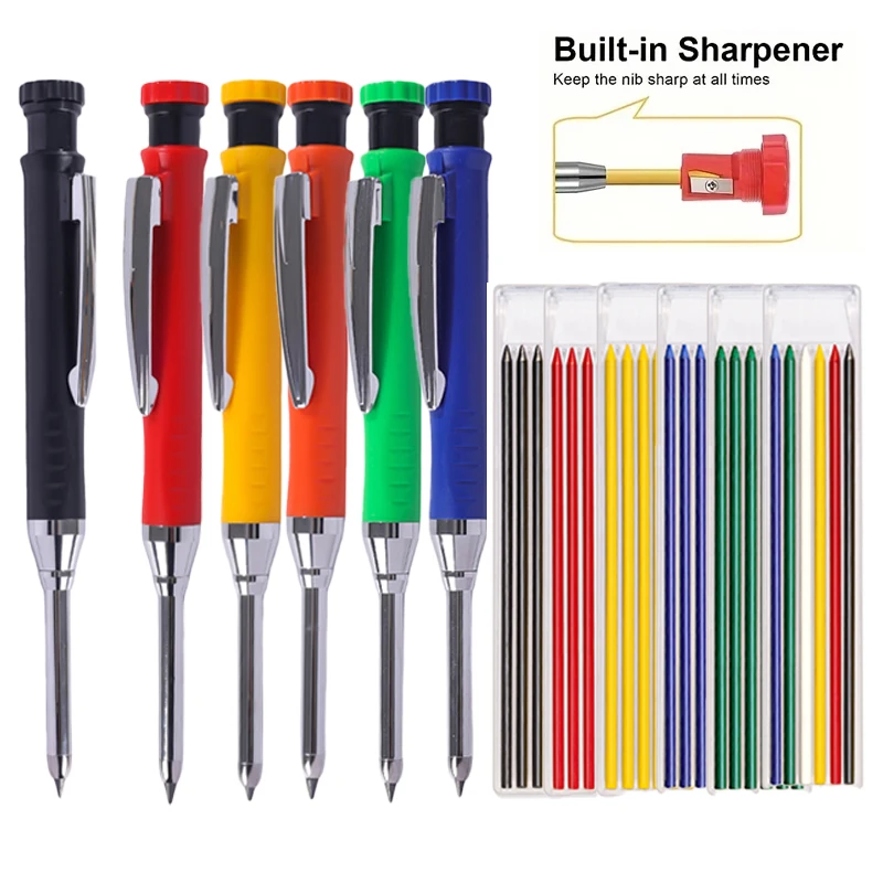 6 Colors Refill Solid Carpenter Pencil Mechanical Pencil With Sharpener for Woodworking Construction Marking Scribing Tools  Read more