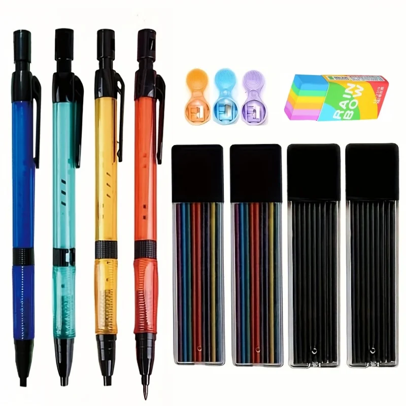 Mechanical Pencils Set 2.0mm with 2B Black/Colors Lead Refill Eraser for Student Writing Sketching Painting Automatic Pencil