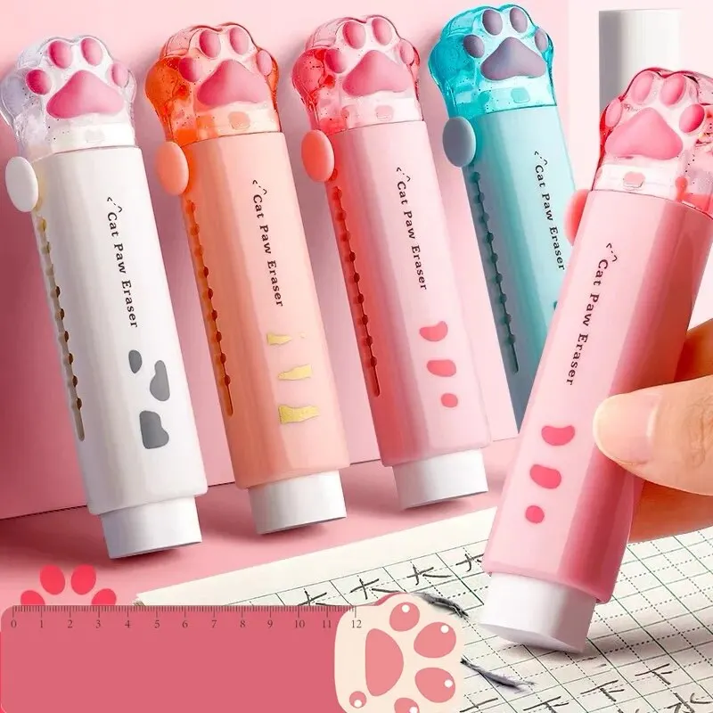 2Pcs Kawaii Erasers Cat Paw Shaped Retractable Erasers Push-pull Cute Rubber Eraser for Kids Students Office School Supplies