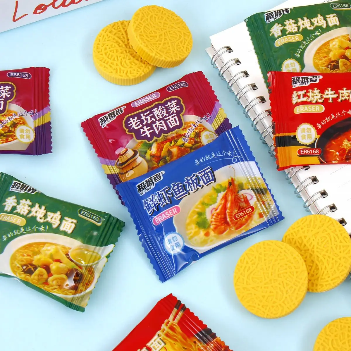 4pcs instant noodle-shaped erasers, school office party event gifts, student treasure boxes, painting exam stationery
