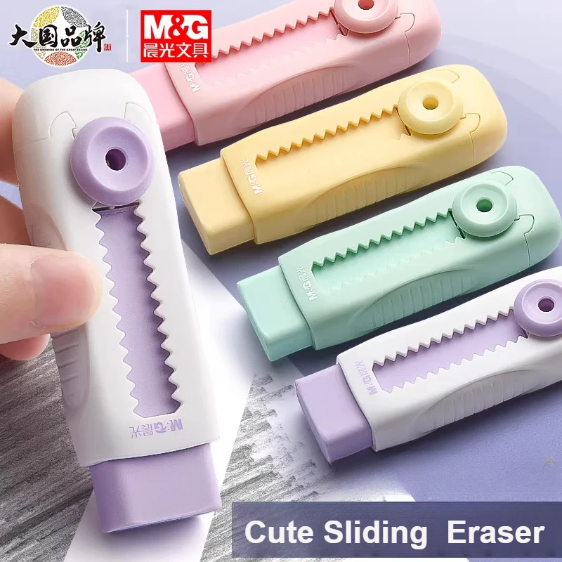 M&G Sliding Eraser 1/2/3/4PCS Cute Push Pull Eraser with Plastic Sleeve Pastel Color for Students School Office Home Supplies
