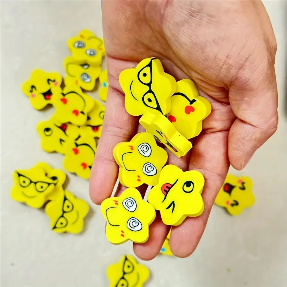 18Pcs Star Erasers - Fun Smiling Faces, Bright Yellow- No Residue, Classroom Prizes, Student Rewards, Homeschool, Office, Party