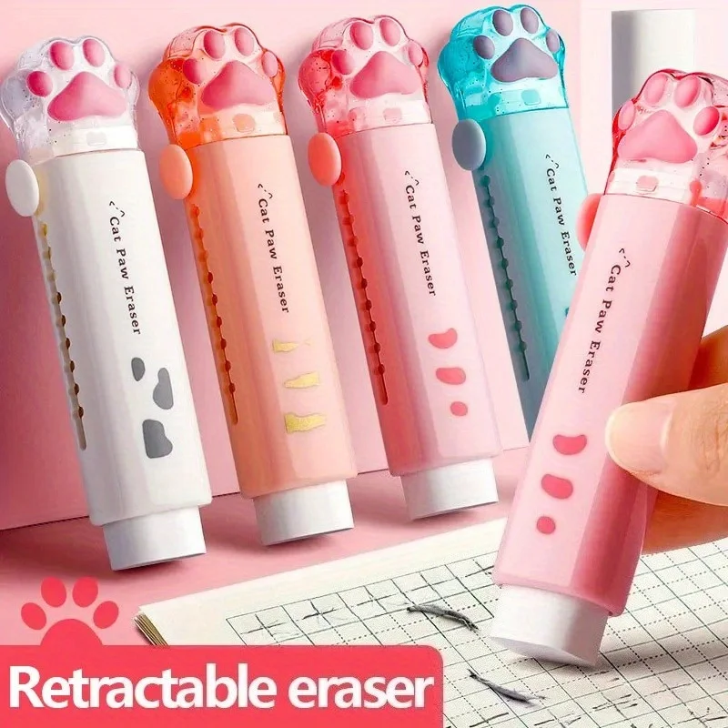 Cute Push-Pull Pen-Shaped Cat Paw Eraser for Mistake Correction Clean and Leave No Trace Ideal for Students and Office