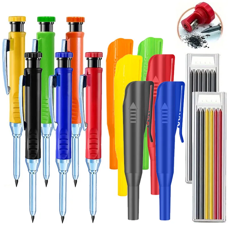 2.8mm Solid Carpenter Pencil with Pencil Cap and Built-in Sharpener for Deep Hole Mechanical Pencil scribing Marking Woodworking