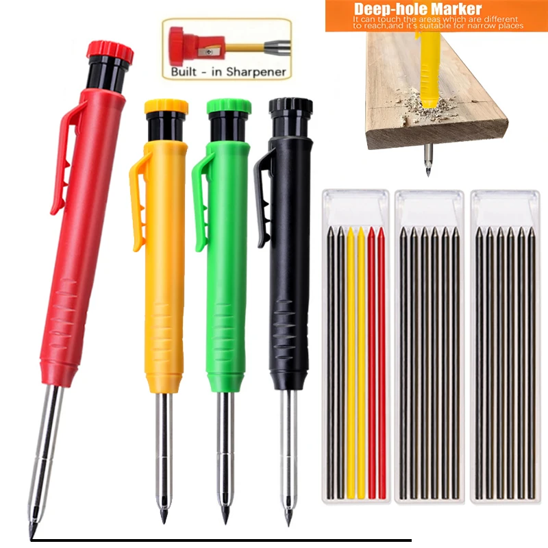 2.8mm Mechanical Pencil Built-in Sharpener Deep Hole Marking Solid Carpenter Pencil Metal Long Head Woodworking Deep-hole Marker  Read more