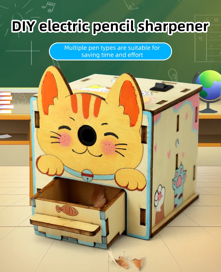 DIY Electric Pencil Sharpener Model Toys Technologia Science Experimental Tool Kit Educational Wooden Puzzle Games for Kids