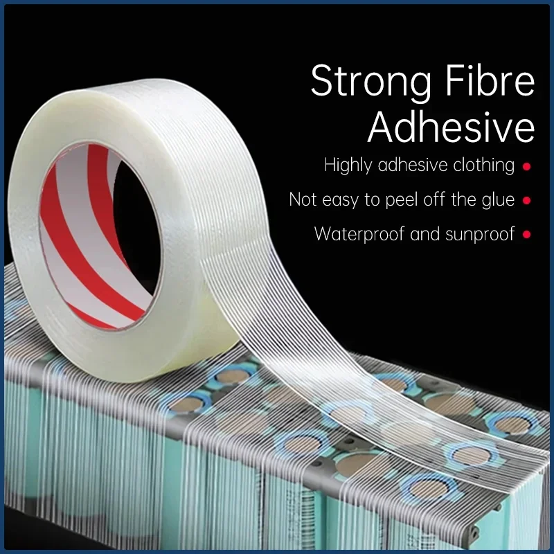 25mStriped Fiber Tape Lithium Battery Pack Insulation Wrap Fiberglass Tape Transparent Single Side Adhesive Seal Packaging Fixed