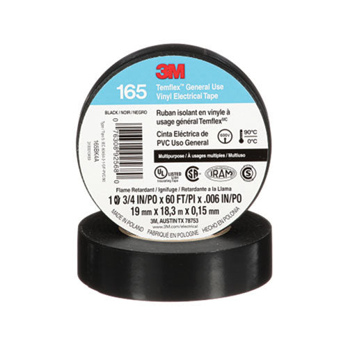 3M Temflex Vinyl Electrical Tape 165, 60 ft x 3/4 in, Black (405-076308-92568)