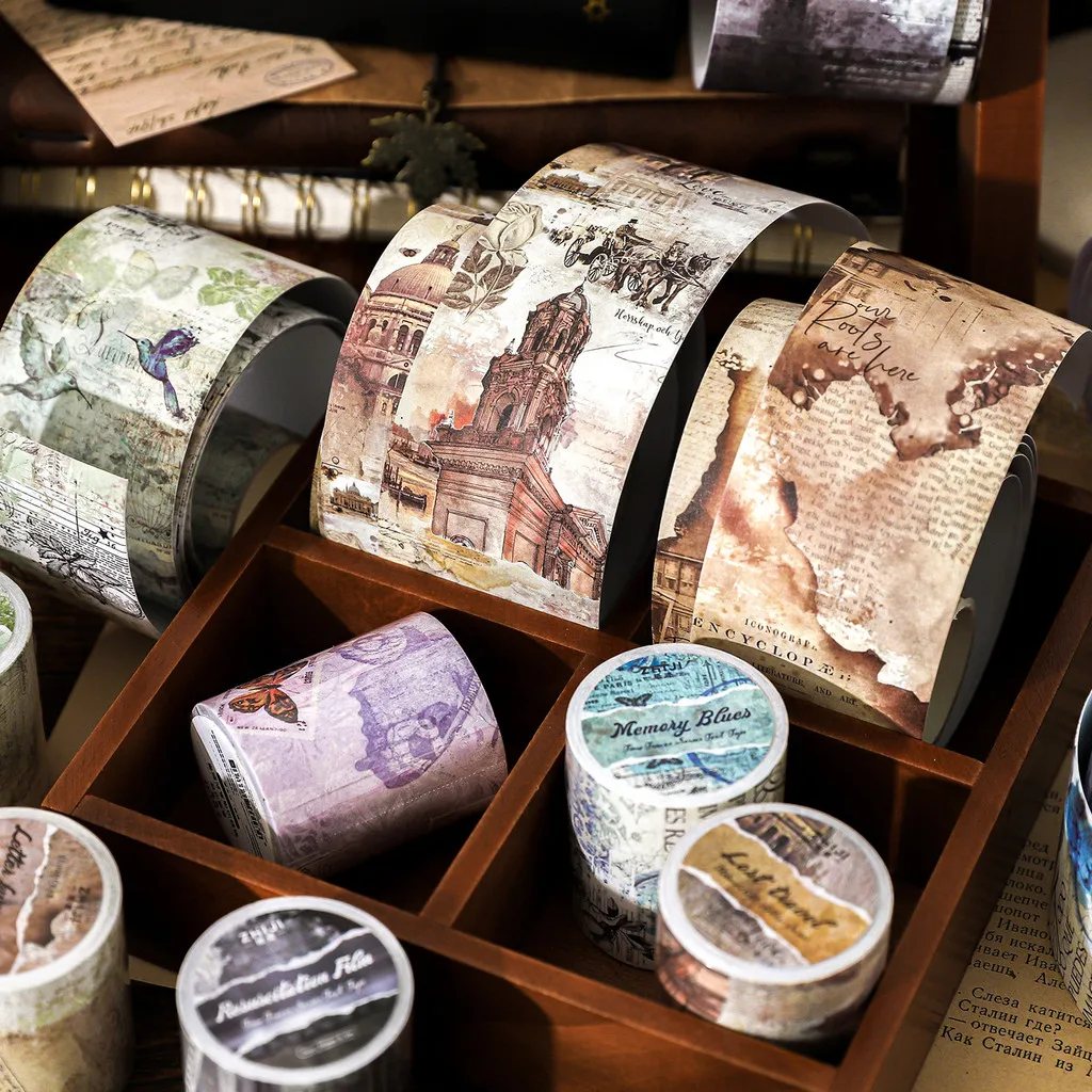 Journamm 50mm*2m Vintage Washi Paper Tape Stickers Decor Junk Journal DIY Scrapbooking Collage Stationery Tapes