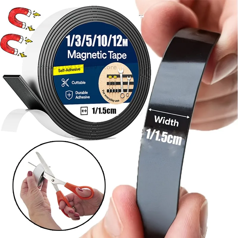 Self Adhesive Magnetic Tape Cuttable Rubber Magnetic Strip for Fridge Wall DIY Photo Poster Fixing Tape Home Office Storage Tool