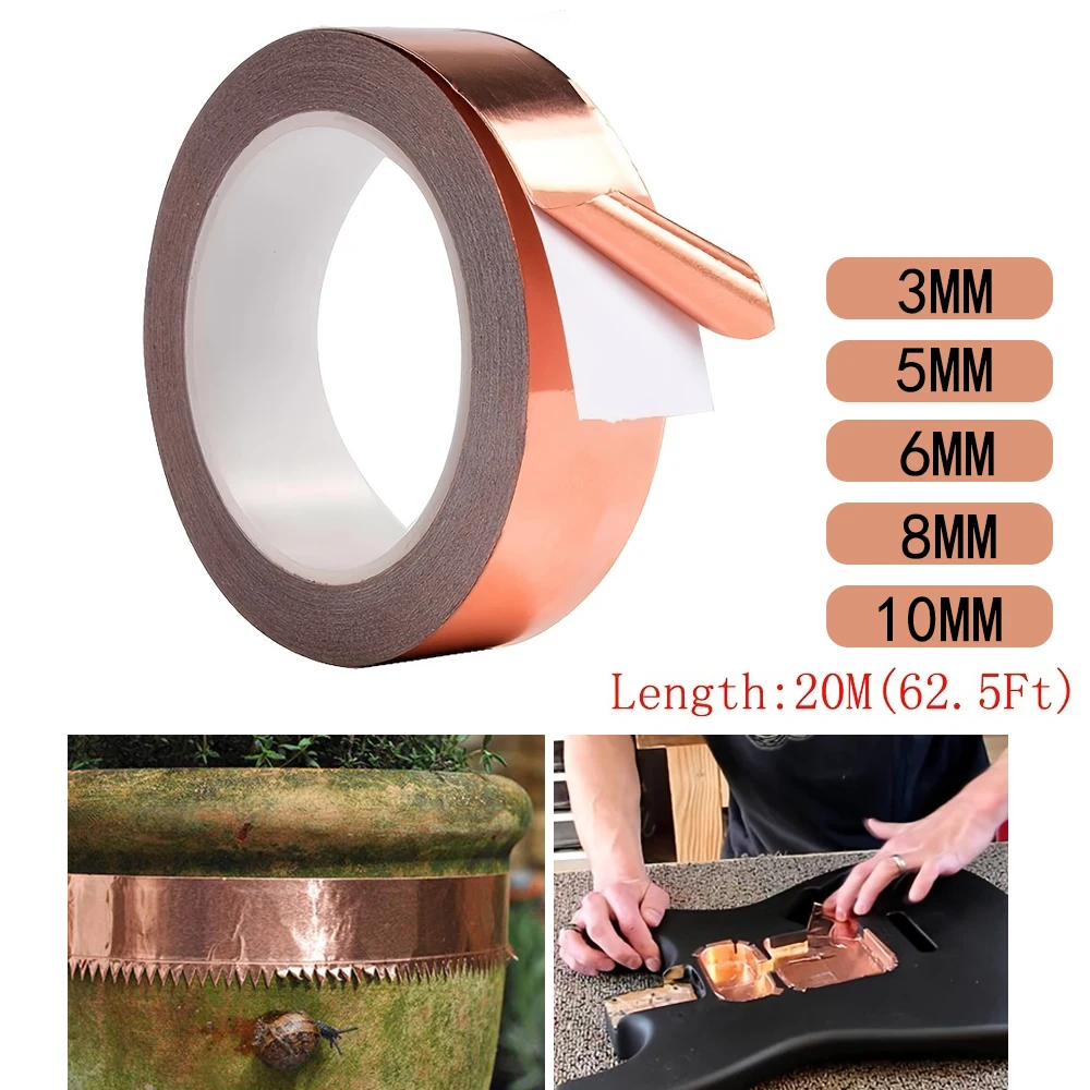 20M Copper Foil Tape Adhesive Single Sided Conductive Snail EMI Shielding DIY Circuit Electrical Repair Tapes