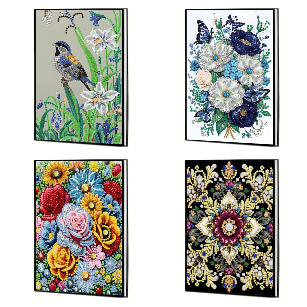 A DIY floral and diamond art notebook magazine, PU leather crystal water diamond notebook, wireless sketching